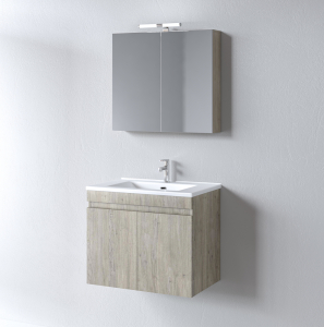 Μοντέρνο έπιπλο μπάνιου σετ της MARTIN σειρά OMEGA μοντέλο BEIGE OAK 75. Κρεμαστή βάση επίπλου, με ενιαίους αποθηκευτικούς χώρους, νιπτήρας πορσελάνης, καθρέπτης κρεμαστός και φωτιστικό. Η σύνθεση Omega εκφράζει την τέλεια αντίθεση πολυτελούς και απλού. Η σειρά Omega ακολουθεί τη σύγχρονη λογική των επίπλων χωρίς πόμολα προσφέροντας έναν κόσμο εργονομίας και δημιουργικών λύσεων. H κρεμαστή στήλη, το φωτιστικό και η μπαταρία δεν συμπεριλαμβάνεται στην τιμή.