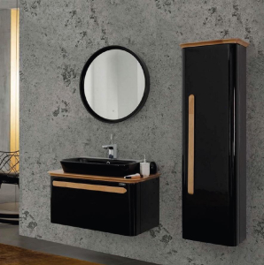 · Κρεμαστή βάση νιπτήρα διαθέτει χώρους αποθήκευσης, γυαλιστερή super high gloss ΜΑΥΡΗ λάκα και υλικό mdf. Το πάνω μέρος και η χειρολαβή του ντουλαπιού είναι κατασκευασμένα από φυσικό ξύλο, μασίφ, ξεχωρίζει για την μοντέρνα γραμμή του και την μεγάλη πρακτικότητα του, διαστάσεις 86x47x48 cm