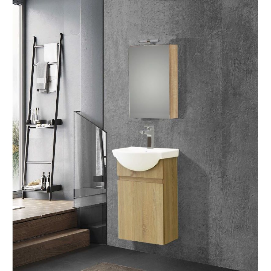 Μοντέρνο έπιπλο μπάνιου σετ της MARTIN σειρά SIENA μοντέλο SONOMA 45. Κρεμαστή βάση επίπλου, με ενιαίους αποθηκευτικούς χώρους, νιπτήρας πορσελάνης, καθρέπτης κρεμαστός και φωτιστικό. Η σύνθεση SIENA εκφράζει την τέλεια αντίθεση πολυτελούς και απλού. Η σειρά SIENA ακολουθεί τη σύγχρονη λογική των επίπλων προσφέροντας έναν κόσμο εργονομίας και δημιουργικών λύσεων. H επιδαπέδια στήλη το φωτιστικό και η μπαταρία δεν συμπεριλαμβάνεται στην τιμή.