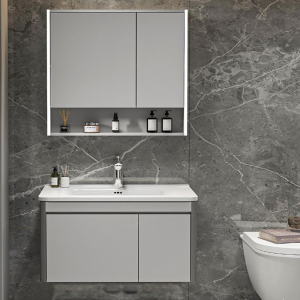 Μοντέρνο επιτοίχιο έπιπλο μπάνιου από κόντρα πλακέ θαλάσσης σετ της MARTIN σειρά PLYWOOD μοντέλο Yvonne χρώμα Grey 80 cm. Επιτοίχια βάση επίπλου, με ενιαίο αποθηκευτικό χώρο, νιπτήρας πορσελάνης, καθρέπτης κρεμαστός με led φωτισμό. Η σύνθεση εκφράζει την τέλεια αντίθεση πολυτελούς και απλού. Η σειρά ακολουθεί τη σύγχρονη λογική των επίπλων προσφέροντας έναν κόσμο εργονομίας και δημιουργικών λύσεων. H στήλη, τα αξεσουάρ, και η μπαταρία δεν συμπεριλαμβάνεται στην τιμή.
