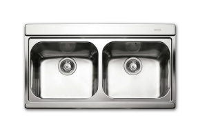Ανοξείδωτος ένθετος νεροχύτης με δύο συμμετρικές γούρνες χωρίς ποδιά, INOX SATIN λείο της APELL μοντέλο: IRIS 9320