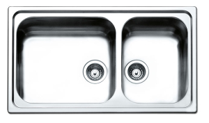 Ανοξείδωτος ένθετος νεροχύτης μη αντιστρεφόμενος, δύο γούρνες , INOX λείο της APELL μοντέλο: LINEAR 8520.