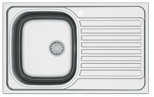 Ανοξείδωτος ένθετος νεροχύτης μια γούρνα και επιφάνεια αποστράγγισης (μαξιλάρι), INOX λείο της EXCEL μοντέλο: Dimitra 720CMAS11 80x50 cm. Υψηλής ποιότητας κράμα μετάλλου ευγενής χάλυβας σειράς 304 (18% χρώμιο /10% νικέλιο) κατάλληλος για οικιακή χρήση. Στην τιμή ΔΕΝ συμπεριλαμβάνονται βαλβίδες και σιφών