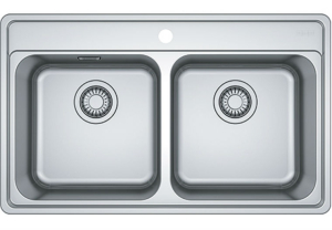Ανοξείδωτος ένθετος νεροχύτης με δύο γούρνες συμμετρικές, INOX λείος της FRANKE συλλογή Bell μοντέλο: BCX 620-35-35. Η Franke κατασκευάζει τους ανοξείδωτες νεροχύτες της από εξαιρετικής ποιότητας ανοξείδωτο χάλυβα AISI 304 18/10 (Cr/Ni) ανώτερο από οποιαδήποτε άλλη κατηγορία ανοξείδωτου.