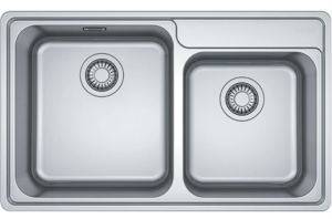 Ανοξείδωτος ένθετος νεροχύτης με δύο γούρνες ασύμμετρες, INOX λείος της FRANKE συλλογή Bell μοντέλο: BCX 620-42-35