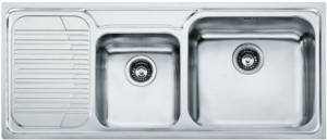 Ανοξείδωτος ένθετος νεροχύτης με δύο γούρνες και ποδιά αριστερά, INOX λείο FRANKE της συλλογής: New Infinito μοντέλο: INX 621-N.