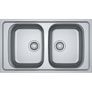 Ανοξείδωτος ένθετος νεροχύτης με δύο γούρνες συμμετρικές χωρίς ποδιά, INOX λείος FRANKE της συλλογής: Spark μοντέλο: SKX 620 86x50 cm. Η Franke κατασκευάζει τους ανοξείδωτες νεροχύτες της από εξαιρετικής ποιότητας ανοξείδωτο χάλυβα AISI 304 18/10 (Cr/Ni) ανώτερο από οποιαδήποτε άλλη κατηγορία ανοξείδωτου. Η αρμονία του design, των σχημάτων και των υλικών δημιουργούν απαράμιλλη αισθητική, αναδεικνύοντας κάθε κουζίνα.