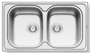 Ανοξείδωτος ένθετος νεροχύτης, δύο γούρνες χωρίς ποδιά, INOX Σαγρέ PYRAMIS μοντέλο: Amaltia (86x50) 2B.
