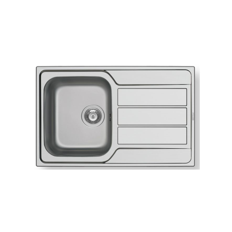 Ανοξείδωτος ένθετος νεροχύτης, μία γούρνα και ποδιά αντιστρεφόμενος, INOX Σαγρέ PYRAMIS μοντέλο: Athena (79x50) 1B 1D. Οι ανοξείδωτοι νεροχύτες PYRAMIS είναι κατασκευασμένοι, αποκλειστικά και μόνο, από άριστης ποιότητάς ατσάλι (CrNi 18/10), τύπου AISI 304. Το άριστης ποιότητας ανοξείδωτο υλικό είναι κατάλληλο για επαφή με τρόφιμα. Παρουσιάζει εξαιρετική αντοχή σε ισχυρά οξέα όπως το νιτρικό οξύ, σε αλκαλικά διαλύματα καθώς και σε διαλύματα οργανικών και ανόργανων αλάτων, ώστε ο νεροχύτης να παραμένει αναλλοίωτος για μια ζωή.
