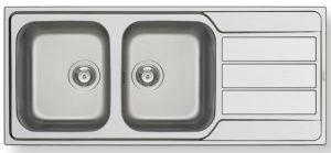 Ανοξείδωτος ένθετος νεροχύτης, δύο γούρνες και ποδιά αντιστρεφόμενος, INOX Σατινέ PYRAMIS μοντέλο: Athena Extra (116x50) 2B 1D. Οι ανοξείδωτοι νεροχύτες PYRAMIS είναι κατασκευασμένοι, αποκλειστικά και μόνο, από άριστης ποιότητάς ατσάλι (CrNi 18/10), τύπου AISI 304. Το άριστης ποιότητας ανοξείδωτο υλικό είναι κατάλληλο για επαφή με τρόφιμα. Παρουσιάζει εξαιρετική αντοχή σε ισχυρά οξέα όπως το νιτρικό οξύ, σε αλκαλικά διαλύματα καθώς και σε διαλύματα οργανικών και ανόργανων αλάτων, ώστε ο νεροχύτης να παραμένει αναλλοίωτος για μια ζωή.