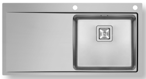 Ανοξείδωτος ένθετος - ισόπεδος νεροχύτης, μία γούρνα με ποδιά αριστερά, INOX Βουρτσισμένο PYRAMIS μοντέλο:Olynthos 1B 1D RH. Οι ανοξείδωτοι νεροχύτες PYRAMIS είναι κατασκευασμένοι, αποκλειστικά και μόνο, από άριστης ποιότητάς ατσάλι (CrNi 18/10), τύπου AISI 304. Το άριστης ποιότητας ανοξείδωτο υλικό είναι κατάλληλο για επαφή με τρόφιμα. Παρουσιάζει εξαιρετική αντοχή σε ισχυρά οξέα όπως το νιτρικό οξύ, σε αλκαλικά διαλύματα καθώς και σε διαλύματα οργανικών και ανόργανων αλάτων, ώστε ο νεροχύτης να παραμένει αναλλοίωτος για μια ζωή.