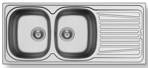 Ανοξείδωτος ένθετος νεροχύτης, δύο γούρνες και ποδιά αντιστρεφόμενος, INOX Σατινέ PYRAMIS μοντέλο: Sparta (116x50) 2B 1D. Οι ανοξείδωτοι νεροχύτες PYRAMIS είναι κατασκευασμένοι, αποκλειστικά και μόνο, από άριστης ποιότητάς ατσάλι (CrNi 18/10), τύπου AISI 304. Το άριστης ποιότητας ανοξείδωτο υλικό είναι κατάλληλο για επαφή με τρόφιμα. Παρουσιάζει εξαιρετική αντοχή σε ισχυρά οξέα όπως το νιτρικό οξύ, σε αλκαλικά διαλύματα καθώς και σε διαλύματα οργανικών και ανόργανων αλάτων, ώστε ο νεροχύτης να παραμένει αναλλοίωτος για μια ζωή.