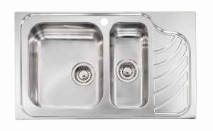Ανοξείδωτος ένθετος επικαθήμενος νεροχύτης, μία γούρνα και άλλη μία μισή με ποδιά αριστερά, φινίρισμα INOX Σατινέ, SANITEC σειρά Eureka μοντέλο CODE 11754 (86x51 2VR 2VS) 86x51 cm. Διατίθεται και με ποδιά δεξιά. Οι ανοξείδωτοι νεροχύτες SANITEC είναι κατασκευασμένοι, αποκλειστικά και μόνο, από άριστης ποιότητάς ατσάλι (CrNi 18/10), τύπου AISI 304. Το άριστης ποιότητας ανοξείδωτο υλικό είναι κατάλληλο για επαφή με τρόφιμα.