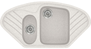 Ένθετος νεροχύτης συνθετικός γρανίτη, αντιστρεφόμενος, μία γούρνα μεγάλη και μία μικρή με επιφάνεια αποστράγγισης, SANITEC μοντέλο: Harmony 302 (96x51 cm) Metallic Ice διατίθεται σε όλες τις αποχρώσεις του χρωματολογίου. Οι συνθετικοί νεροχύτες παράγονται από την SANITEC εδώ και πολλά έτη, σε διάφορους εργονομικούς σχεδιασμούς, λειτουργικές φόρμες και σε μεγάλη ποικιλία χρωμάτων (με εμφάνιση «γρανίτη» & «μεταλλιζέ»).