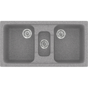 Νεροχύτης συνθετικός γρανίτη ένθετος, δύο γούρνες μεγάλες συμμετρικές και μία μικρή, SANITEC μοντέλο: Harmony 325 Granite Grey (97x51 cm) διατίθεται σε όλες τις αποχρώσεις του χρωματολογίου. Οι συνθετικοί νεροχύτες παράγονται από την SANITEC εδώ και πολλά έτη, σε διάφορους εργονομικούς σχεδιασμούς, λειτουργικές φόρμες και σε μεγάλη ποικιλία χρωμάτων (με εμφάνιση «γρανίτη» & «μεταλλιζέ»).