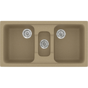Νεροχύτης συνθετικός γρανίτη ένθετος, δύο γούρνες μεγάλες συμμετρικές και μία μικρή, SANITEC μοντέλο: Harmony 325 Metallic Cream (97x51 cm) διατίθεται σε όλες τις αποχρώσεις του χρωματολογίου. Οι συνθετικοί νεροχύτες παράγονται από την SANITEC εδώ και πολλά έτη, σε διάφορους εργονομικούς σχεδιασμούς, λειτουργικές φόρμες και σε μεγάλη ποικιλία χρωμάτων (με εμφάνιση «γρανίτη» & «μεταλλιζέ»).
