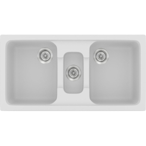 Νεροχύτης συνθετικός γρανίτη ένθετος, δύο γούρνες μεγάλες συμμετρικές και μία μικρή, SANITEC μοντέλο: Harmony 325 White (97x51 cm) διατίθεται σε όλες τις αποχρώσεις του χρωματολογίου. Οι συνθετικοί νεροχύτες παράγονται από την SANITEC εδώ και πολλά έτη, σε διάφορους εργονομικούς σχεδιασμούς, λειτουργικές φόρμες και σε μεγάλη ποικιλία χρωμάτων (με εμφάνιση «γρανίτη» & «μεταλλιζέ»).
