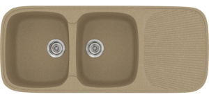 Ένθετος νεροχύτης συνθετικός γρανίτη, αντιστρεφόμενος , δύο γούρνες και επιφάνεια αποστράγγισης, SANITEC μοντέλο: Premium 300 (116x50 cm) Metallic Cream διατίθεται σε όλες τις αποχρώσεις του χρωματολογίου. Οι συνθετικοί νεροχύτες παράγονται από την SANITEC εδώ και πολλά έτη, σε διάφορους εργονομικούς σχεδιασμούς, λειτουργικές φόρμες και σε μεγάλη ποικιλία χρωμάτων (με εμφάνιση «γρανίτη» & «μεταλλιζέ»).