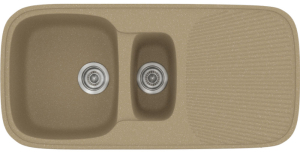 Ένθετος νεροχύτης συνθετικός γρανίτη, αντιστρεφόμενος, μία γούρνα μεγάλη και μία μικρή με επιφάνεια αποστράγγισης, SANITEC μοντέλο: Premium 301 (97x50 cm) Metallic Cream διατίθεται σε όλες τις αποχρώσεις του χρωματολογίου. Οι συνθετικοί νεροχύτες παράγονται από την SANITEC εδώ και πολλά έτη, σε διάφορους εργονομικούς σχεδιασμούς, λειτουργικές φόρμες και σε μεγάλη ποικιλία χρωμάτων (με εμφάνιση «γρανίτη» & «μεταλλιζέ»).