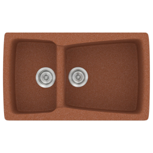 Ένθετος συνθετικός νεροχύτης γρανίτη, αντιστρεφόμενος, με δύο γούρνες, SANITEC μοντέλο: Modern 320 (79x50 cm) Granite Terracotta διατίθεται σε όλες τις αποχρώσεις του χρωματολογίου. Οι συνθετικοί νεροχύτες παράγονται από την SANITEC εδώ και πολλά έτη, σε διάφορους εργονομικούς σχεδιασμούς, λειτουργικές φόρμες και σε μεγάλη ποικιλία χρωμάτων (με εμφάνιση «γρανίτη» & «μεταλλιζέ»).