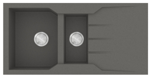Νεροχύτης από φυσικό ορυκτό γρανίτη και συνθετικές ρητίνες, της SANITEC σειρά ULTRA GRANITE μοντέλο: Code: 802 χρώματος Pietra. Εργονομικός αντιστρεφόμενος σχεδιασμός με δύο γούρνες (μία χρηστική και μία βοηθητική), επιφάνεια αποστράγγισης και άνετο περιθώριο για επιπλέον τοποθέτηση dispenser. SANITEC γρανιτένιοι νεροχύτες ULTRA GRANITE με σύσταση 80% χαλαζίας (το σκληρότερο ορυκτό του φυσικού γρανίτη) παραμένουν αναλλοίωτοι στο πέρασμα του χρόνου.