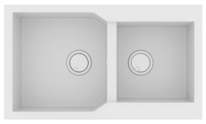Νεροχύτης από φυσικό ορυκτό γρανίτη και συνθετικές ρητίνες, της SANITEC σειρά ULTRA GRANITE μοντέλο: Code: 804 χρώματος Bianco, Ocra, Sabbia, Sienna, Pietra & Grafite. Πρακτικός χρηστικός, αντιστρεφόμενος σχεδιασμός με δύο ανόμοιες ευρύχωρες γούρνες και άνετο περιθώριο για επιπλέον τοποθέτηση dispenser. SANITEC γρανιτένιοι νεροχύτες ULTRA GRANITE με σύσταση 80% χαλαζίας (το σκληρότερο ορυκτό του φυσικού γρανίτη) παραμένουν αναλλοίωτοι στο πέρασμα του χρόνου.