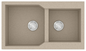 Νεροχύτης από φυσικό ορυκτό γρανίτη και συνθετικές ρητίνες, της SANITEC σειρά ULTRA GRANITE μοντέλο: Code: 804 χρώματος Bianco, Ocra, Sabbia, Sienna, Pietra & Grafite. Πρακτικός χρηστικός, αντιστρεφόμενος σχεδιασμός με δύο ανόμοιες ευρύχωρες γούρνες και άνετο περιθώριο για επιπλέον τοποθέτηση dispenser. SANITEC γρανιτένιοι νεροχύτες ULTRA GRANITE με σύσταση 80% χαλαζίας (το σκληρότερο ορυκτό του φυσικού γρανίτη) παραμένουν αναλλοίωτοι στο πέρασμα του χρόνου.