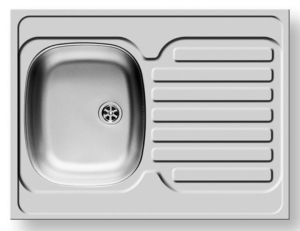 Ανοξείδωτος επικαθήμενος νεροχύτης, μία γούρνα και ποδιά αντιστρεφόμενος, INOX Σατινέ PYRAMIS μοντέλο: International (80x60) 1B 1D.