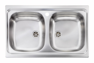 Ανοξείδωτος ένθετος επικαθήμενος νεροχύτης, δύο γούρνες, φινίρισμα INOX Αγυάλιστο της SANITEC συλλογή: MONDIAL μοντέλο: 11502 (79x50 2V) 79x50 cm. Η SANITEC κατασκευάζει τους ανοξείδωτες νεροχύτες της από εξαιρετικής ποιότητας ανοξείδωτο χάλυβα AISI 304 18/10 (Cr/Ni) ανώτερο από οποιαδήποτε άλλη κατηγορία ανοξείδωτου