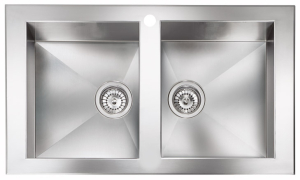 Ανοξείδωτος ένθετος επικαθήμενος νεροχύτης, δύο γούρνες χωρίς ποδιά, φινίρισμα INOX Σατινέ της SANITEC συλλογή: Punto Quadra μοντέλο: 10904 (86x50 2V) 86x50 cm. Η SANITEC κατασκευάζει τους ανοξείδωτες νεροχύτες της από εξαιρετικής ποιότητας ανοξείδωτο χάλυβα AISI 304 18/10 (Cr/Ni) ανώτερο από οποιαδήποτε άλλη κατηγορία ανοξείδωτου.