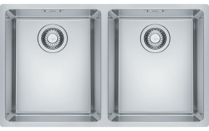 Ανοξείδωτος ένθετος νεροχύτης (Εγκατάσταση Fast Fix), δύο γούρνες χωρίς ποδιά, φινίρισμα INOX λείος της FRANKE συλλογή: Maris Bowl μοντέλο: MRX 220 34 - 34. Η Franke κατασκευάζει τους ανοξείδωτες νεροχύτες της από εξαιρετικής ποιότητας ανοξείδωτο χάλυβα AISI 304 18/10 (Cr/Ni) ανώτερο από οποιαδήποτε άλλη κατηγορία ανοξείδωτου.