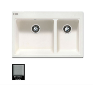 Ένθετος νεροχύτης ορυκτού γρανίτη με δύο ασύμμετρες γούρνες χωρίς ποδιά, Carron Phoenix μοντέλο: FIJI Silver Stone 5200 80x52 cm. Διατίθεται επιπλέον σε αποχρώσεις Cappuccino, Ivory, White, Espresso, Beige, Oyster & Graphite. Μια πλήρης γκάμα νεροχυτών, που διακρίνονται για την εξαιρετική τους αντοχή, την υψηλή ποιότητα και τα φυσικά χρώματα, συνδυάζουν άψογα την κομψότητα και την εργονομία.