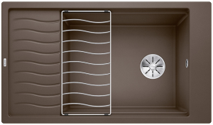 Ένθετος νεροχύτης γρανίτη αντιστρεφόμενος, SILGRANIT™ PuraDur™ II χρώματος Coffee της BLANCO μοντέλο: ELON XL 8 S 86x50 cm βάθος 19 cm. Οι νεροχύτες BLANCO από SILGRANIT ξεχωρίζουν χάρη στην κομψότητα των όμορφων χρωμάτων και στα ελκυστικά σχέδια.Το υλικό SILGRANIT™ PuraDur™ II αποτελείται από 80% φυσικό γρανίτη. Ο γρανίτης συνδυάζεται με ένα ακρυλικό μίγμα, κεραμικά και χρωστικές ουσίες για να δώσει ασυναγώνιστα χαρακτηριστικά. Περιλαμβάνεται το Inox πλέγμα αποστράγγισης.