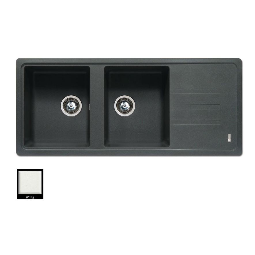 Ένθετος νεροχύτης γρανίτη με ποδιά, αντιστρεφόμενος, δύο συμμετρικές γούρνες Carron Phoenix μοντέλο: Debut 210 White 116x50 cm . Διατίθεται επιπλέον σε αποχρώσεις Graphite, Beige, Cappuccino & Oyster. Μια πλήρης γκάμα νεροχυτών, που διακρίνονται για την εξαιρετική τους αντοχή, την υψηλή ποιότητα και τα φυσικά χρώματα, συνδυάζουν άψογα την κομψότητα και την εργονομία.