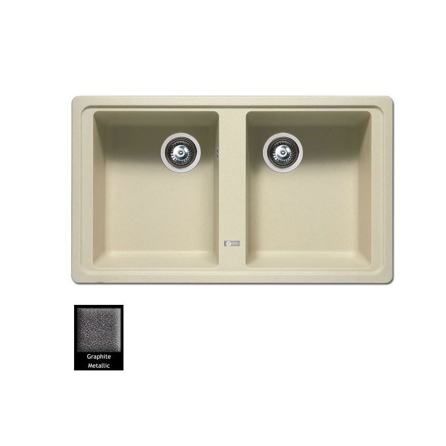Ένθετος νεροχύτης γρανίτη με δύο συμμετρικές γούρνες χωρίς ποδιά, Carron Phoenix μοντέλο: Debut 286 Graphite 86x50 cm. Διατίθεται επιπλέον σε αποχρώσεις Beige, Ivory, White, Cappuccino & Oyster. Μια πλήρης γκάμα νεροχυτών, που διακρίνονται για την εξαιρετική τους αντοχή, την υψηλή ποιότητα και τα φυσικά χρώματα, συνδυάζουν άψογα την κομψότητα και την εργονομία.
