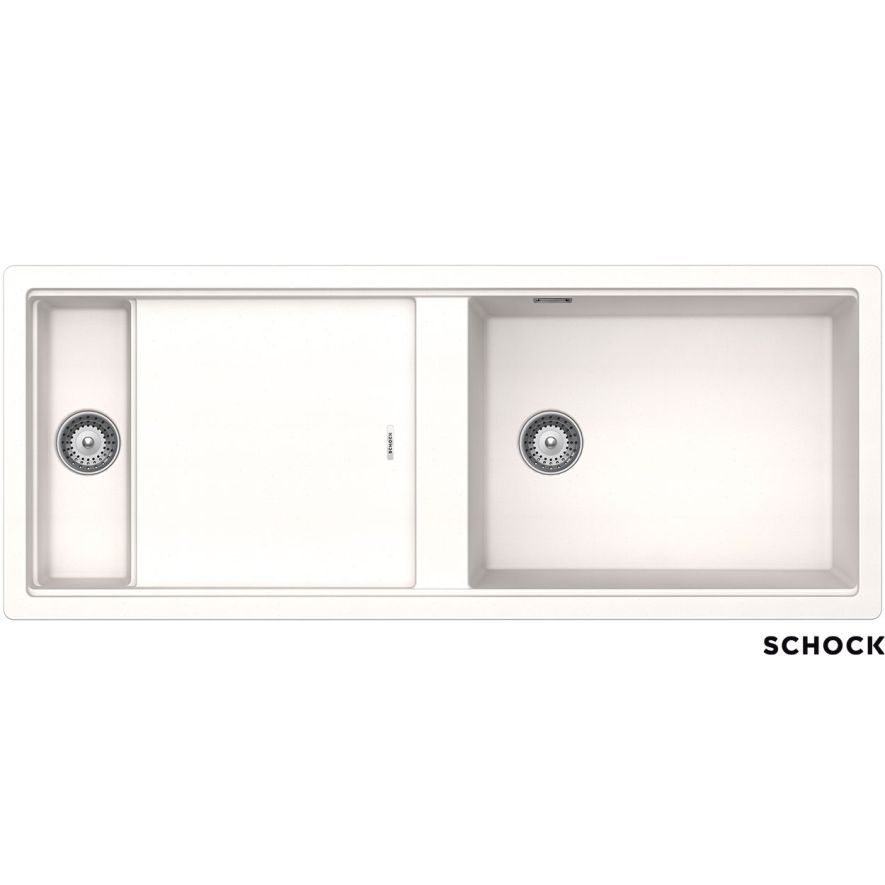Ένθετος νεροχύτης ορυκτού γρανίτη με δύο ασύμμετρες γούρνες και ποδιά, SCHOCK μοντέλο: CRISTADUR PREPSTATION 81500 Polaris 114x46 cm. Μια πλήρης γκάμα νεροχυτών, που διακρίνονται για την εξαιρετική τους αντοχή, την υψηλή ποιότητα και τα φυσικά χρώματα, συνδυάζουν άψογα την κομψότητα και την εργονομία.