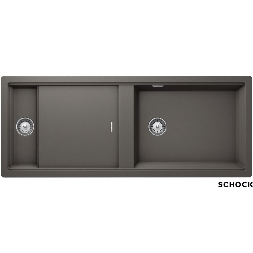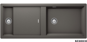 Ένθετος νεροχύτης ορυκτού γρανίτη με δύο ασύμμετρες γούρνες και ποδιά, SCHOCK μοντέλο: CRISTADUR PREPSTATION 81500 Silverstone 114x46 cm. Μια πλήρης γκάμα νεροχυτών, που διακρίνονται για την εξαιρετική τους αντοχή, την υψηλή ποιότητα και τα φυσικά χρώματα, συνδυάζουν άψογα την κομψότητα και την εργονομία.
