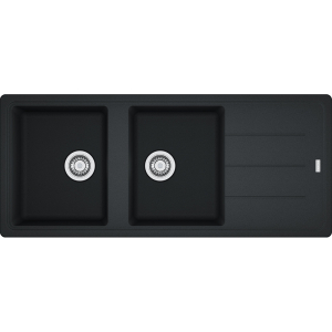 Ένθετος νεροχύτης γρανίτη με δύο συμμετρικές γούρνες και ποδιά, FRANKE Fragranite+ της συλλογής: BASIS μοντέλο: BFG 621 Onyx