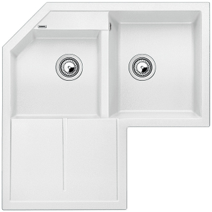 Ένθετος γωνιακός νεροχύτης γρανίτη, SILGRANIT™ PuraDur™ II χρώματος White της BLANCO μοντέλο: METRA 9E 83x83x50 cm βάθος 19 cm