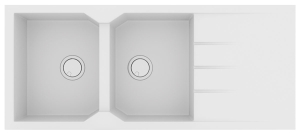 Νεροχύτης από φυσικό ορυκτό γρανίτη και συνθετικές ρητίνες, της SANITEC σειρά ULTRA GRANITE μοντέλο: Code: 800 χρώματος Bianco, Ocra, Sabbia, Sienna, Pietra & Grafite. Εργονομικός αντιστρεφόμενος σχεδιασμός με δύο όμοιες γούρνες και επιφάνεια αποστράγγισης. SANITEC γρανιτένιοι νεροχύτες ULTRA GRANITE με σύσταση 80% χαλαζίας (το σκληρότερο ορυκτό του φυσικού γρανίτη) παραμένουν αναλλοίωτοι στο πέρασμα του χρόνου.