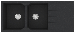Νεροχύτης από φυσικό ορυκτό γρανίτη και συνθετικές ρητίνες, της SANITEC σειρά ULTRA GRANITE μοντέλο: Code: 800 χρώματος Bianco, Ocra, Sabbia, Sienna, Pietra & Grafite. Εργονομικός αντιστρεφόμενος σχεδιασμός με δύο όμοιες γούρνες και επιφάνεια αποστράγγισης. SANITEC γρανιτένιοι νεροχύτες ULTRA GRANITE με σύσταση 80% χαλαζίας (το σκληρότερο ορυκτό του φυσικού γρανίτη) παραμένουν αναλλοίωτοι στο πέρασμα του χρόνου.