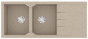 Νεροχύτης από φυσικό ορυκτό γρανίτη και συνθετικές ρητίνες, της SANITEC σειρά ULTRA GRANITE μοντέλο: Code: 800 χρώματος Bianco, Ocra, Sabbia, Sienna, Pietra & Grafite. Εργονομικός αντιστρεφόμενος σχεδιασμός με δύο όμοιες γούρνες και επιφάνεια αποστράγγισης. SANITEC γρανιτένιοι νεροχύτες ULTRA GRANITE με σύσταση 80% χαλαζίας (το σκληρότερο ορυκτό του φυσικού γρανίτη) παραμένουν αναλλοίωτοι στο πέρασμα του χρόνου.