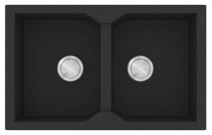 Νεροχύτης από φυσικό ορυκτό γρανίτη και συνθετικές ρητίνες, της SANITEC σειρά ULTRA GRANITE μοντέλο: Code: 806 χρώματος Bianco, Ocra, Sabbia, Sienna, Pietra & Grafite. Πρακτικός σχεδιασμός δύο όμοιες ευρύχωρες γούρνες. SANITEC γρανιτένιοι νεροχύτες ULTRA GRANITE με σύσταση 80% χαλαζίας (το σκληρότερο ορυκτό του φυσικού γρανίτη) παραμένουν αναλλοίωτοι στο πέρασμα του χρόνου.