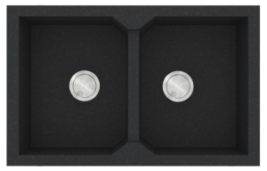 Νεροχύτης από φυσικό ορυκτό γρανίτη και συνθετικές ρητίνες, της SANITEC σειρά ULTRA GRANITE μοντέλο: Code: 818 χρώματος Bianco, Ocra, Sabbia, Sienna, Pietra & Grafite. Πρακτικός σχεδιασμός δύο όμοιες ευρύχωρες γούρνες. SANITEC γρανιτένιοι νεροχύτες ULTRA GRANITE με σύσταση 80% χαλαζίας (το σκληρότερο ορυκτό του φυσικού γρανίτη) παραμένουν αναλλοίωτοι στο πέρασμα του χρόνου.