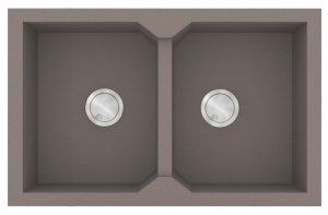 Νεροχύτης από φυσικό ορυκτό γρανίτη και συνθετικές ρητίνες, της SANITEC σειρά ULTRA GRANITE μοντέλο: Code: 818 χρώματος Bianco, Ocra, Sabbia, Sienna, Pietra & Grafite. Πρακτικός σχεδιασμός δύο όμοιες ευρύχωρες γούρνες. SANITEC γρανιτένιοι νεροχύτες ULTRA GRANITE με σύσταση 80% χαλαζίας (το σκληρότερο ορυκτό του φυσικού γρανίτη) παραμένουν αναλλοίωτοι στο πέρασμα του χρόνου.