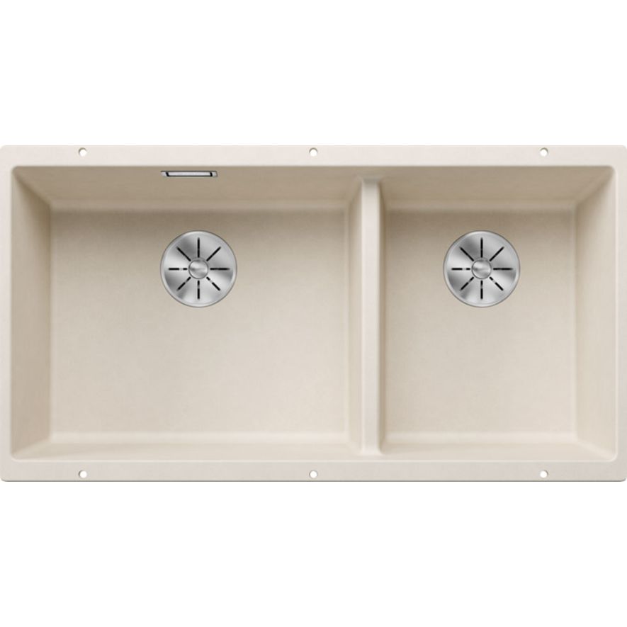Υποκαθήμενος νεροχύτης γρανίτη, SILGRANIT™ PuraDur™ II χρώματος Soft White της BLANCO μοντέλο: SUBLINE 480/320-U 855x460 mm βάθος 200mm