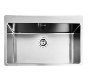 Ανοξείδωτος ένθετος νεροχύτης κουζίνας αθόρυβος γούρνα χωρίς ποδιά, INOX λείο της FORTinox μοντέλο: SQUADRO 29075 76x50,5 cm. Υψηλής ποιότητας κράμα χάλυβα (18/10) AISI 304.