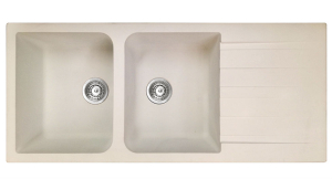 Ένθετος νεροχύτης συνθετικός με δύο συμμετρικές γούρνες και ποδιά, DURALIT μοντέλο: KS210 Beige Avena