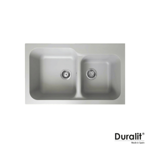 Ένθετος νεροχύτης συνθετικός με δύο ασύμμετρες γούρνες χωρίς ποδιά, DURALIT μοντέλο: KZ200 Gris Platinum 83x50 cm. Διατίθεται επιπλέον σε αποχρώσεις Blanco Artico, Negro Grafito & Beige Avena. Μια πλήρης γκάμα νεροχυτών, που διακρίνονται για την εξαιρετική τους αντοχή, την υψηλή ποιότητα και τα φυσικά χρώματα, συνδυάζουν άψογα την κομψότητα και την εργονομία.