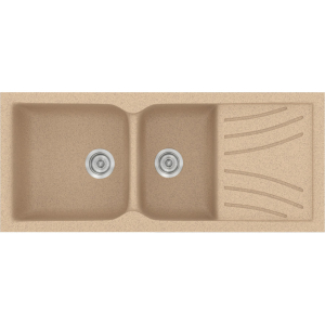 Νεροχύτης συνθετικός γρανίτη ένθετος ή υποκαθήμενος, αντιστρεφόμενος, μία γούρνα μεγάλη και μία μικρή και ποδιά, SANITEC μοντέλο: Eclectic 323 (115x50 cm) Granite Beige διατίθεται σε όλες τις αποχρώσεις του χρωματολογίου. Οι συνθετικοί νεροχύτες παράγονται από την SANITEC εδώ και πολλά έτη, σε διάφορους εργονομικούς σχεδιασμούς, λειτουργικές φόρμες και σε μεγάλη ποικιλία χρωμάτων (με εμφάνιση «γρανίτη» & «μεταλλιζέ»).
